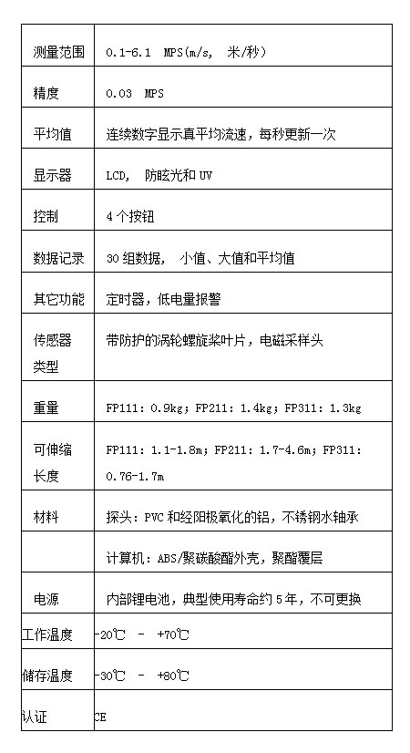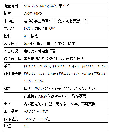 進(jìn)口直讀式流速儀FP211技術(shù)參數(shù):
